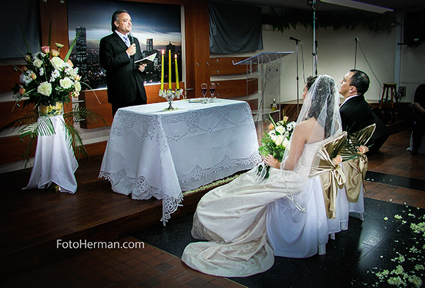 Pastor y novios en boda cristiana en Bogotá